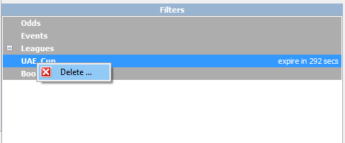 You can set quick filters for Odds, Events, Leagues and Bookmakers.
